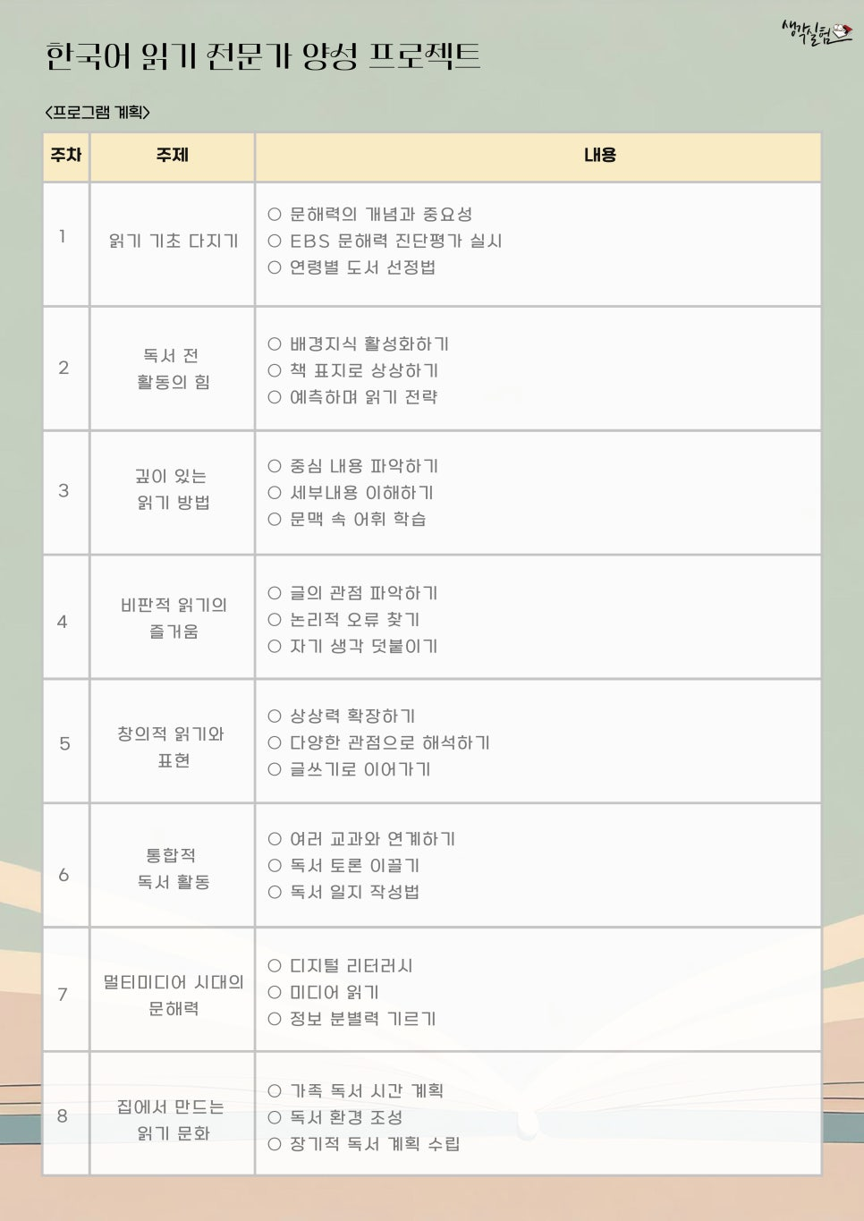 ✔ EBS 문해력 콘텐츠 활용, 수료 후 자격증 발급 가능